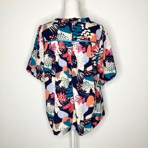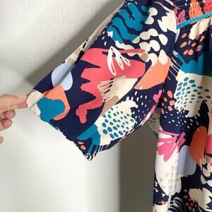 Umgee Suzie Multicolor Abstract Print Short Sleeve Smocked Peasant Blouse Top XL