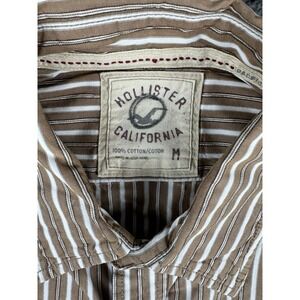 Hollister Mens Shirt Medium Brown Striped Long Sleeve Vintage Style Button Down
