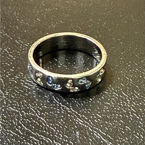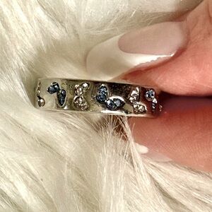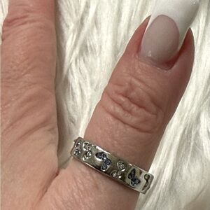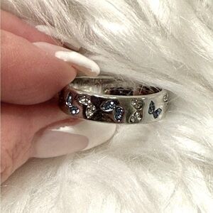 Silver tone ring featuring tiny butterflies around the entire band. Blue and clear crystals . Size 10. Perfect for anyone who loves butterflies. New.