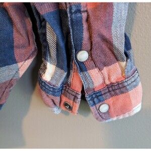 Western style long sleeve plaid shirt with pearl snaps. Made of 100% cotton. Excellent pre-owned condition. It is about 25" long and 18" armpit to armpit. Buy with confidence. Your satisfaction is my priority. Ships fast and comes from a smoke-free home.