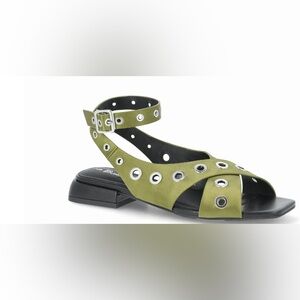 Stylish green sandals with eyelet accents. Perfect for casual wear.