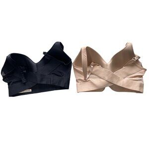 Rhonda Shear 2 Pack Molded Cup Bra with Wrap Back Size Large Black Beige Lounge