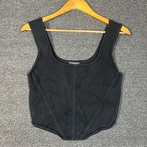 Elevate your wardrobe with this sleek black sleeveless top. Perfect for any occasion, it offers a stylish and versatile look.