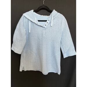 Soft Surroundings Cozumel Hooded Pullover Sweater, Petite Medium, Pockets, Blue