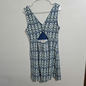 Anthropologie Maeve Green Blue Geometric Fit and Flare Cutout Mini Dress Size 12