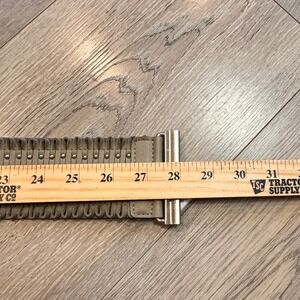 Accentuate your waist with this stylish Stone S/M wide elastic belt. Rows of polished silver studs adorn the faux leather trim, creating a chic studded effect along the undulating edges. The substantial silver-tone metal buckle closure offers a secure and fashionable fastening. This belt is perfect for cinching dresses, adding definition to tunics, or elevating casual outfits. Wear it to define your silhouette at a brunch outing, a casual day out shopping, or an evening dinner.