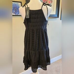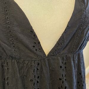 Lulu's S Black Spaghetti Strap V Neck Cotton Eyelet Sundress With Ruffle Hem