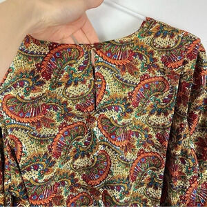 Vintage 90s Paisley Blouse Size 12 Large Grannycore Womens Gold Long Sleeve