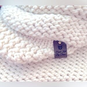 Made with wool ease thick and quick yarn. 80% acrylic, 20% wool