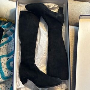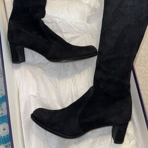 LIKE NEW W/ BOX Stuart Weitzman Chicboot Black Suede Pull On Tall Heeled Boots
