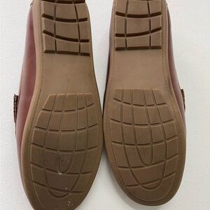 Elegant chestnut loafers with sleek metal detailing. Perfect for versatile wear.