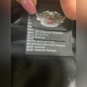 Stay stylish with this black leather hat featuring a chain detail and the iconic Harley-Davidson logo. Perfect for adding a touch of edge to any outfit.