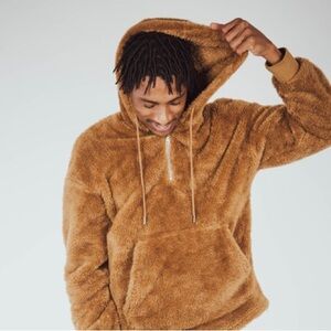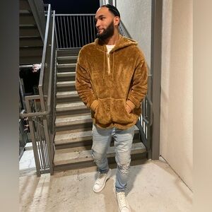 Original Use Teddy Half Zip Hoodie. In great preowned condition. Has a draw string at the bottom and 1/4 zip closure. Is a bit oversize and super soft in the outside and inside. Color my very due to lighting