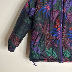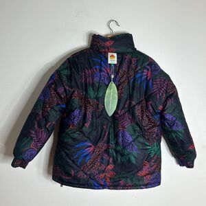 Farm Rio ABSTRACT PATCHES REVERSIBLE PUFFER JACKET colorful crochet XS M