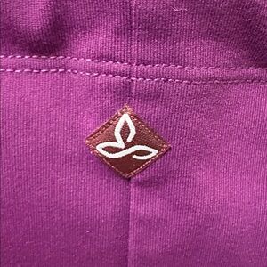 Prana X-Large. Tie bodice. Violet stretchy top. Violet, blue and orange patterned flared skirt. Recycled poly and spandex. 15 in pit to pit. Very stretchy. 34 in length. Excellent condition no stains or holes
