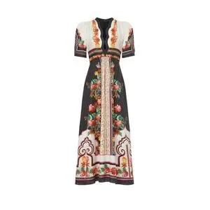 SALONI Tabitha 100% Silk Black Red A-Line Skirt Cutout Scalloped Bodice Dress is a stunning and sophisticated piece that artfully blends classic elegance with modern detailing. Made from luxurious 100% silk, this dress features a striking black and red color palette that exudes richness and depth. The bodice showcases intricate scalloped edges and cutout details, adding a touch of romantic charm and visual interest. The A-line skirt flows beautifully from the waist, creating a flattering and graceful silhouette.