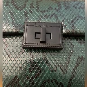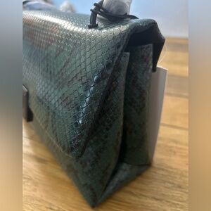 NICOLE MILLER Green Snakeskin Clutch