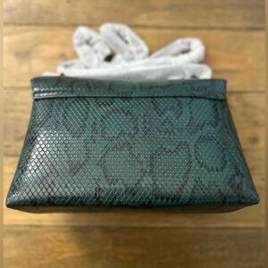 * Add a touch of luxury to your ensemble with this elegant green snakeskin clutch.