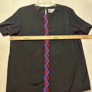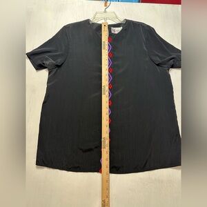 Vintage Maggie Sweet Black Blouse Embroidered Purple Red Trim Short Sleeve L