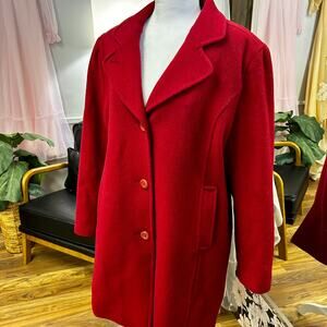 L.L. Bean 100% Lambswool Vintage Red Winter Coat 14 New England Quiet Luxury