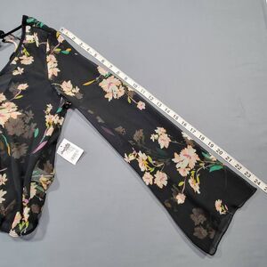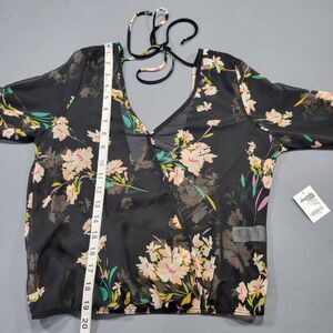 Charlotte Russe Black Floral Shirt NEW Long Sleeves Sheer Crop Blouse Women's S