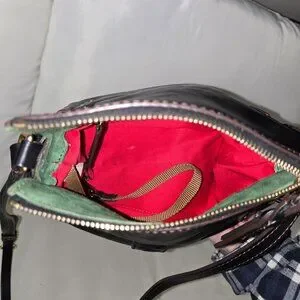Supple Italian Florentine leather, green suede trim, red lining — the trifecta. Perfect everyday crossbody that ages like fine wine.