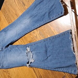 AMERICAN EAGLE Jeans Womens 4 BLUE FLARED Super HIGH RISE Distressed