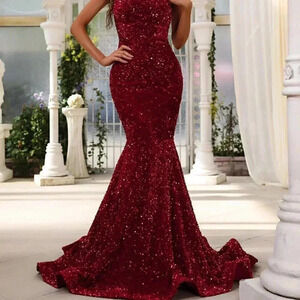 Burgundy Preppy Womens One Shoulder Mermaid Hem Sequin Formal Dress