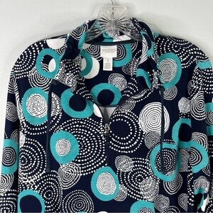 Chico's Weekends Pullover Top Women’s 1 M Blue Teal White Circle Print Pocket