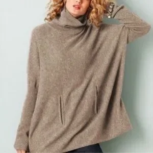 Garnet Hill Cashmere Wool Blend Oversized Turtleneck Sweater Light Mocha L