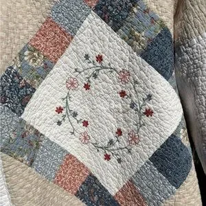 Please Note : This is an upcycled item and wear may be apparent. This quilted blanket was in excellent condition and you will have many years of elegant wear. Seams are serged to prevent excessive fraying.