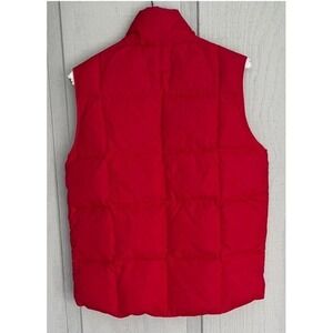 The Lands' End Puffer Vest for kids in size medium (10/12) is a stylish and practical choice for cold weather. Made from polyester with a softshell fabric type and Down filling, this full-zip vest features quilted snap pockets and a classic red color. It is designed for various occasions such as travel, activewear, parties, and casual outings. The puffer style, padded and insulated features make it perfect for winter, spring, fall, and even cooler summer days. Easy to care for with machine washable instructions, this unisex kids vest from Lands' End is a versatile and colorful addition to any wardrobe.