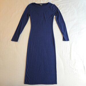 Lulus Connelly Navy Blue Ribbed Long Sleeve Bodycon Midi Dress
