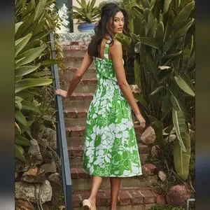 Chic midi dress with vibrant floral pattern. Sleeveless design. Drop waist. Excellent condition