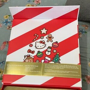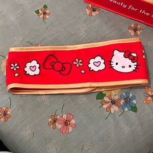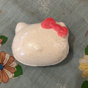 Festive Hello Kitty set with sleep mask, headband, and bath bomb. Perfect for holiday cheer. Headband is Velcro adjustable. Bath bomb is still in plastic, headband and sleep mask have been used once and washed.