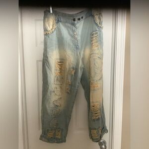Bottom hems tacked up for styling (stitching can be easily removed)