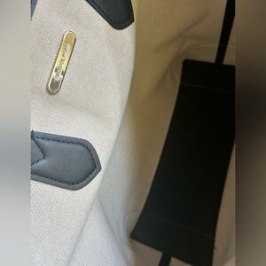 Elegant Michael Kors tote in cream and black. Spacious interior with sleek design.