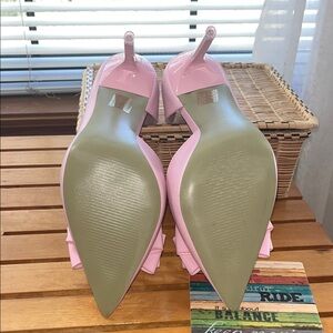 Add a touch of elegance to your outfit with these chic pink heels, featuring a stylish bow accent. Ideal for any occasion. Brand new in box, never worn. Size is listed as 41 which corresponds to a size 9.