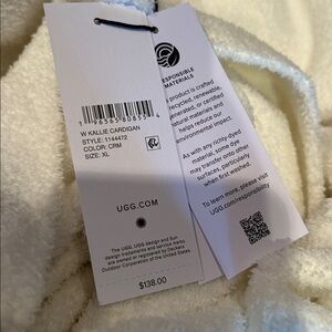 NWT UGG kallie Soft Cream white open front Cardigan size XL