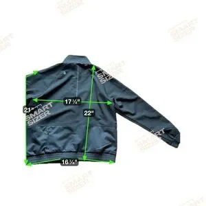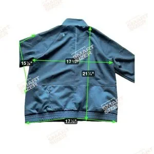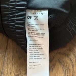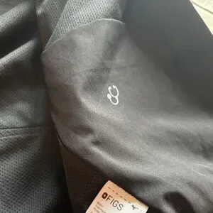 Sleek black bomber jacket by Figs. Features a zip-up front and elastic cuffs. Ideal for casual wear.