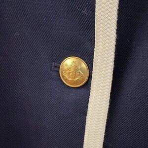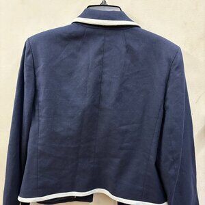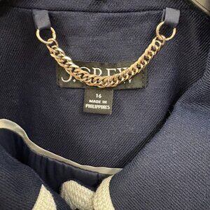 NEW J. Crew Lucie lady jacket in stretch linen blend size 16. Retails for: $348.00 It comes with contrast-trim details, four pockets and glinting gold crest buttons. Plus, it's crafted from a breathable stretch linen blend to keep you looking and feeling cool all day long.