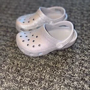 Crocs Kids Classic Glitter Clog Size C9 Silver Sparkle Slip On Water Shoes Cute