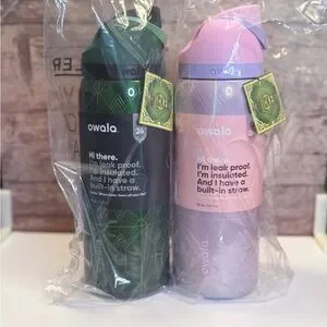 Owala Wicked For Good are amazing because you can chug or sip your drink in one—plus this limited edition Wicked pattern is gorgeous! Will ship bubble wrapped. NWT, Still in packaging, never used. Removed my set from packaging to take pictures.