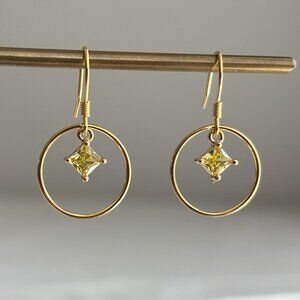 Small Gold Plated Over Sterling Silver Hoop Earrings With Yellow Square Zircon
