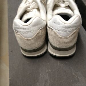 Classic New Balance sneakers in cream and gray. Perfect blend of comfort and style.