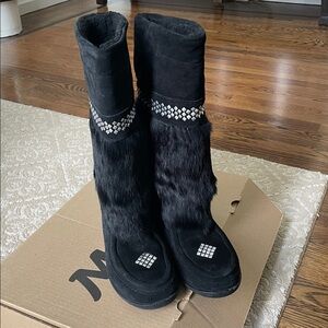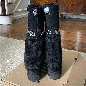 Manitobah Mukluks Black fur with Rhinestone Detail Tall Boots