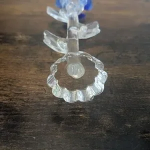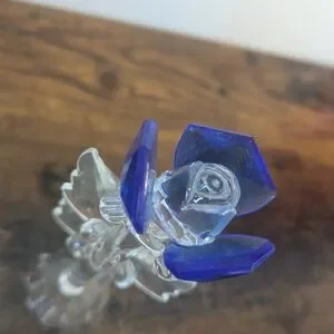Charming glass flower with vibrant blue petals. Clear glass stem and leaves. Perfect for home decor.