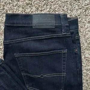 Modern men’s Lucky Brand 410 Straight Athletic fit stretchy dark blue denim jeans that are sized 38/34. Brand new with tags attached. Pockets on the front and back. You will love the look and feel!