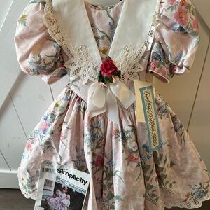 Daisy Kingdom vintage pristine Floral Puff Sleeve Dress with Lace Collar