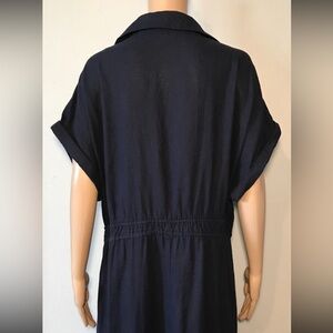 Unbranded Women's Dress Size 2X Navy Blue Button Up Cap Sleeve Linen Blend Maxi